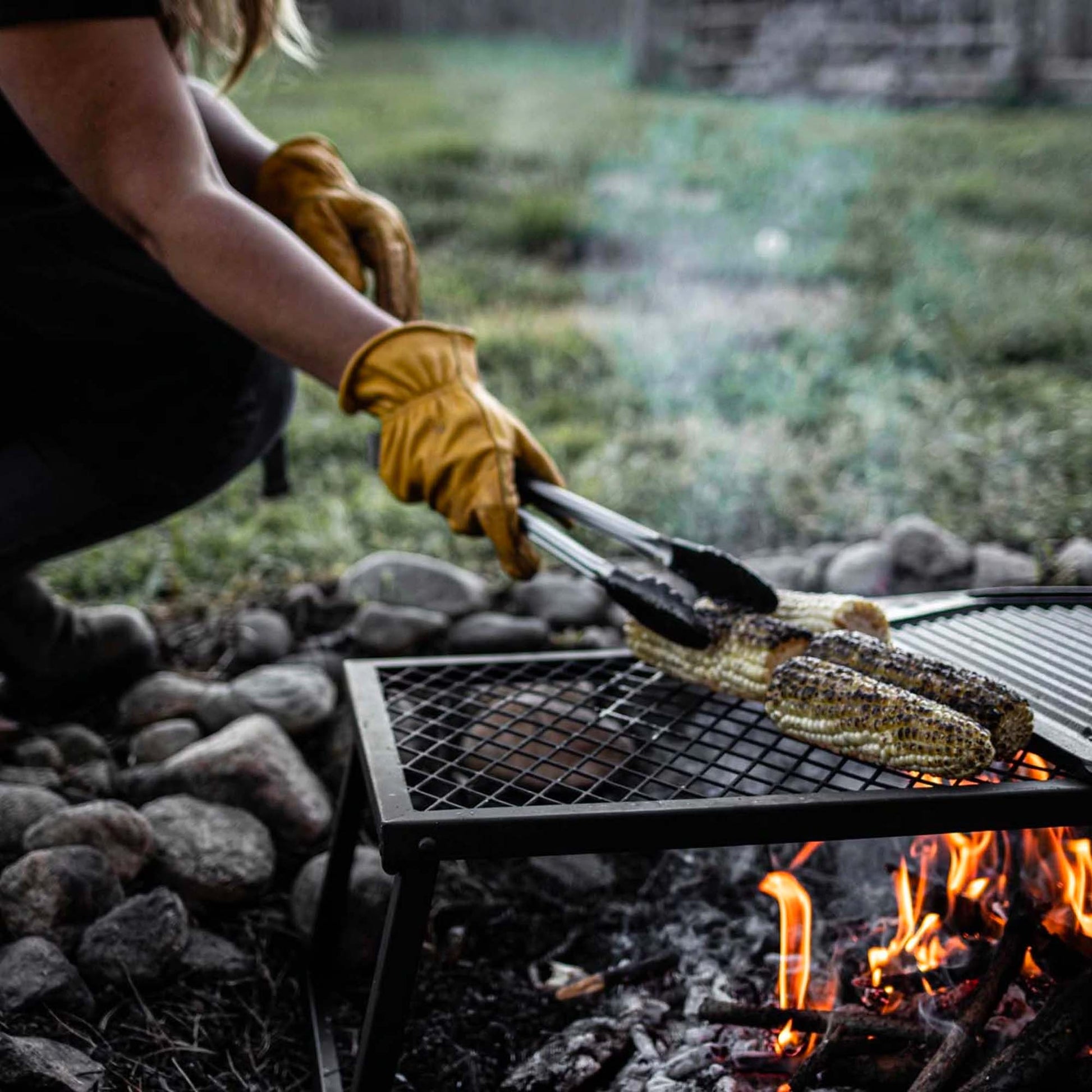 Heavy-duty steel grill grate for open-fire cooking. Portable, simple, and ready to go - a cooking surface wherever you need it. Folding legs make for easy transportation and compact storage. Cook directly on the grill surface for seared steaks, sausages, veggies, and more. Use with our cast iron skillet or dutch oven for even temperature and increased versatility.