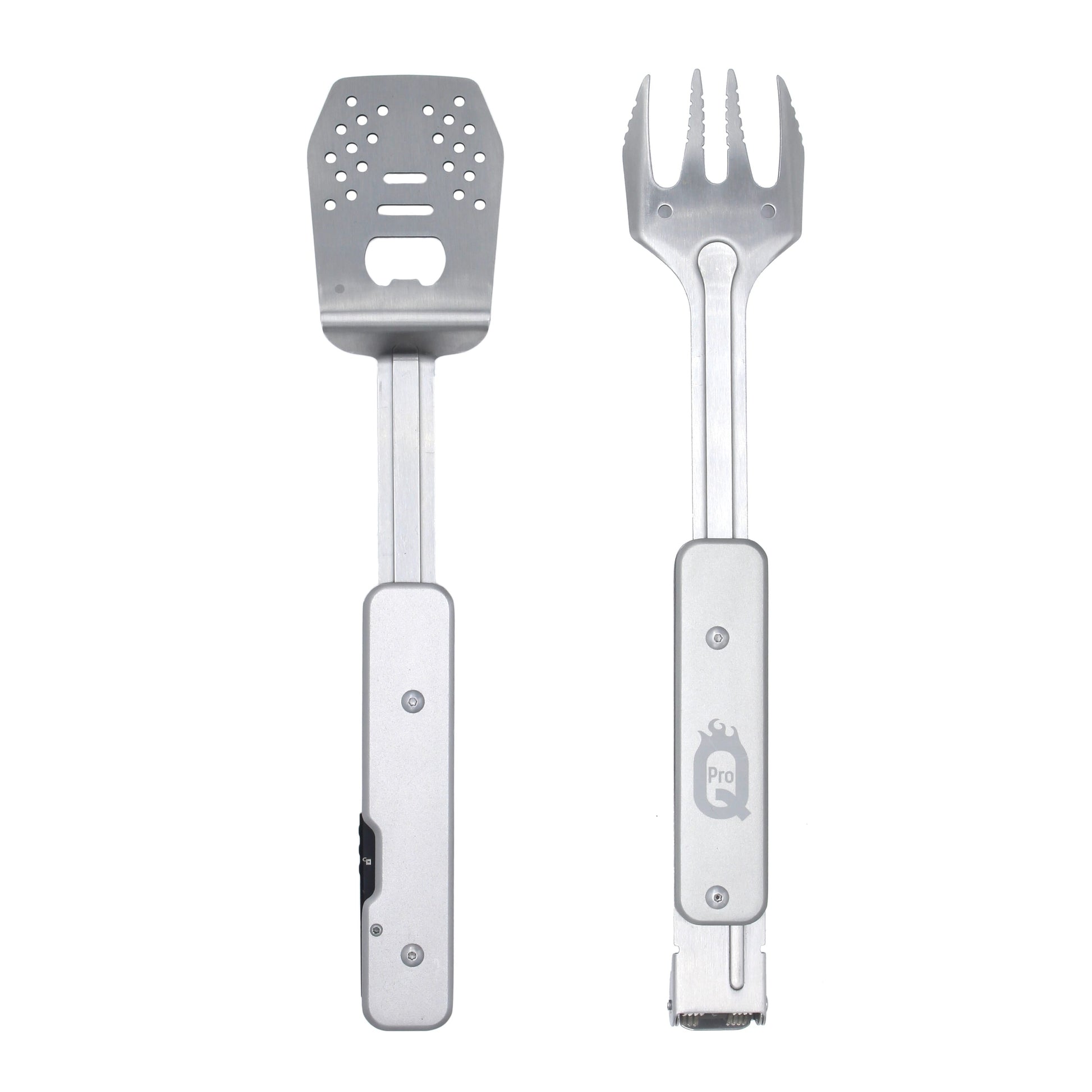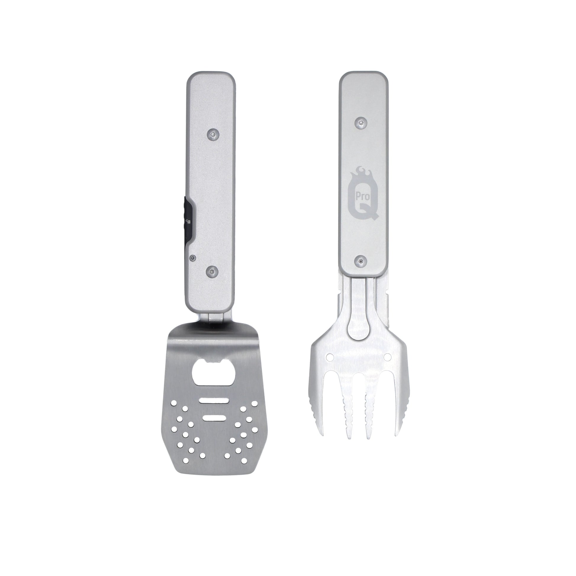 The ProQ BBQ Multi-Tool is ideal for travelling light. This ingenious multi-functional BBQ tool set transforms, with a click and a twist, between a handy pair of BBQ tongs, grill fork, spatula and a bottle opener. High quality & lightweight, this tool will easily slip into a pocket, backpack or the cutlery storage in your campervan. The ideal tool for any BBQ fan when on the move, and a great gift too - the perfect BBQ gadget!
