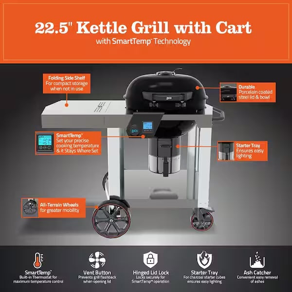 - Grill type: SmartTemp™ charcoal kettle grill with cart